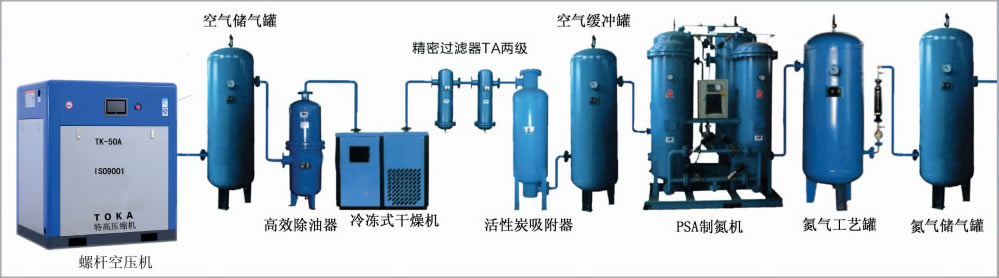 HTN系列變壓吸附制氮設備,采用優(yōu)質分子篩為吸附劑,利用變壓吸附原理,直接從壓縮空氣中獲得氮氣。